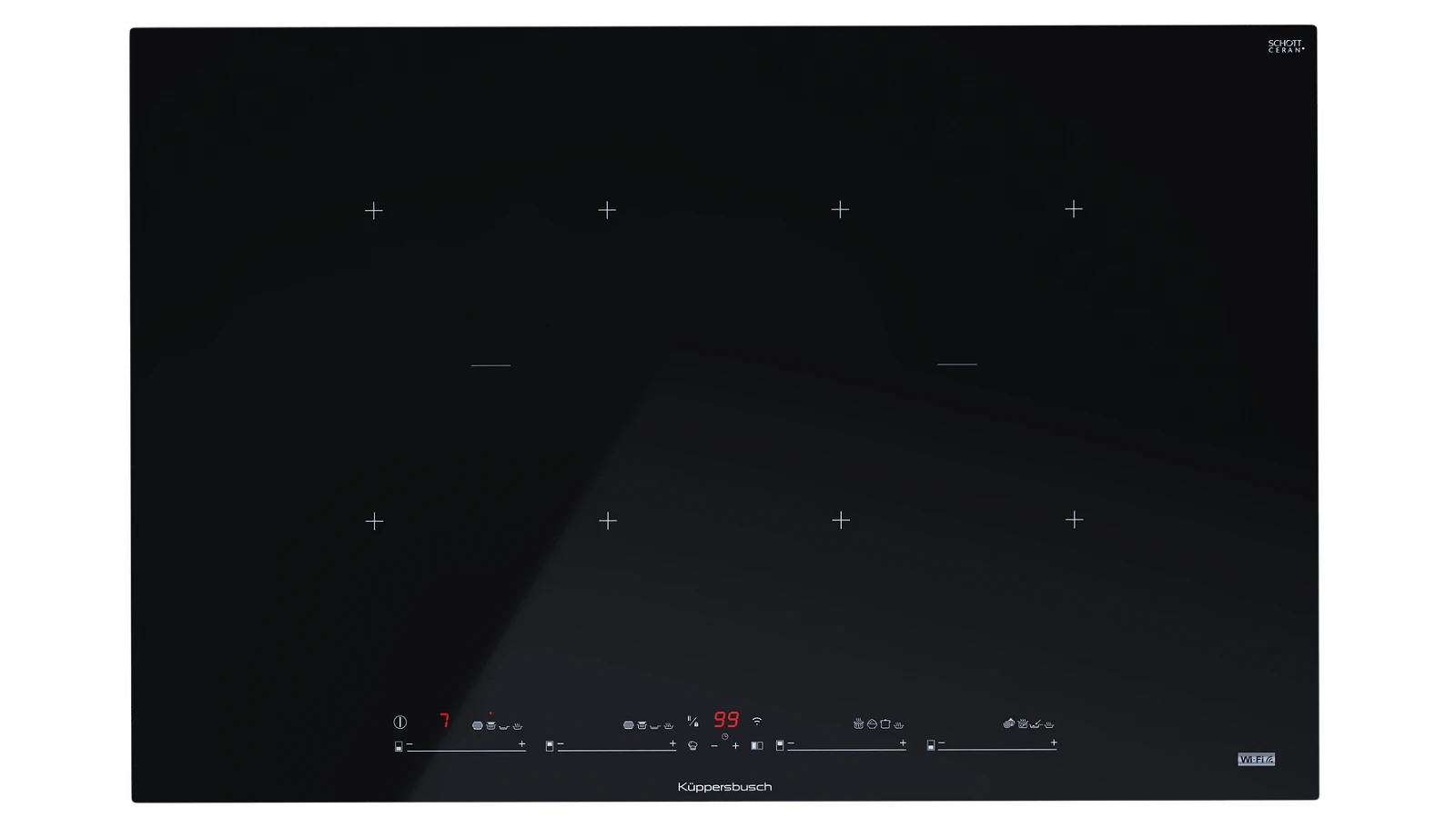 Сенсорная панель управления активируется при включении варочной панели. После того как вы выбрали варочную зону, воспользуйтесь соответствующими слайдерными зонами для настройки параметров приготовления.