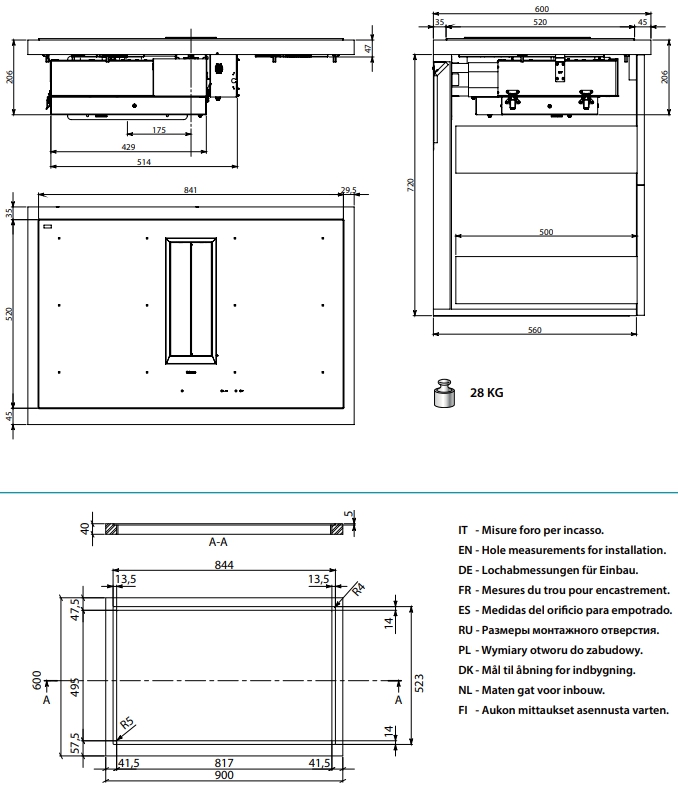 Особенности модели индукционная варочная панель с вытяжкой для режима РЕЦИРКУЛЯЦИИ, корпус из нержавеющей стали AISI 304, автоматическое открытие и закрытие всасывающих элементов, бесщеточный двигатель с 9 скоростями + режим Booster, функция Keep Warm (42/70/94 градуса), предупреждение о насыщении жирового фильтра, предупреждение о насыщении фильтра Carbon.Zeo, технология Flex Surface, , класс энергоэффективности: A+